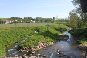 Fachwerkhäuser und Pleiße in Großstöbnitz • Foto: -